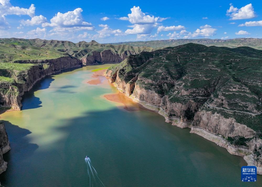 ??這是8月12日拍攝的老牛灣北側(cè)的一處黃河峽谷(無人機(jī)照片)。