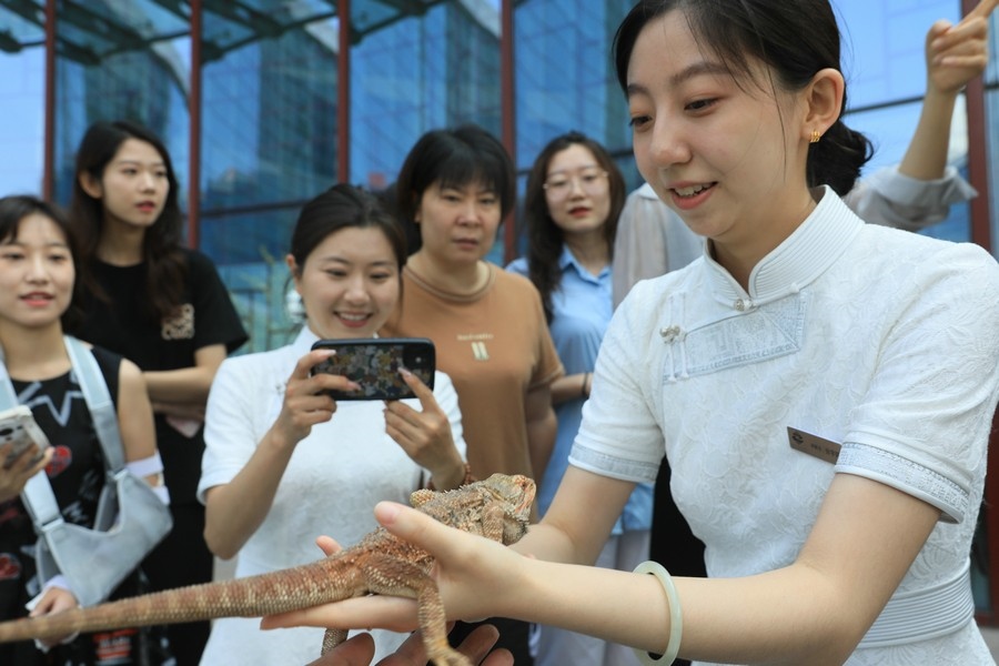 8月15日,第2個全國生態(tài)日,內(nèi)蒙古自治區(qū)自然資源廳在內(nèi)蒙古自然博物館組織開展全國生態(tài)日宣傳活動?;顒蝇F(xiàn)場的野生動物零距離互動和自然科普公益課等,吸引了眾多參觀者圍觀。