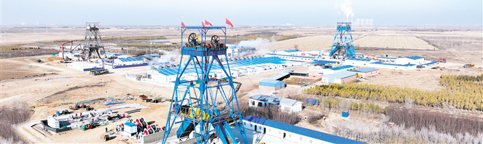 在距此90多公里的鄂托克前旗上海廟經(jīng)濟開發(fā)區(qū),能源主戰(zhàn)場的鷹駿一號煤礦項目建設同樣如火如荼?,F(xiàn)場大型機械來回穿梭,作業(yè)機械有序進行著主、副礦井的井筒掘砌工作。加工車間旁,焊接師傅正聚精會神地焊著鋼板接口,現(xiàn)場一片繁忙景象。