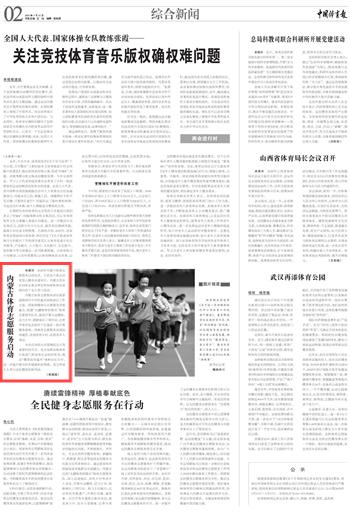 2024年3月11日,《中國體育報》第2版刊發(fā)題為《內(nèi)蒙古體育志愿服務啟動》的文章,報道了2025年內(nèi)蒙古體育志愿服務啟動儀式,日前在大青山國家登山健身步道舉行。內(nèi)蒙古自治區(qū)24家企事業(yè)單位和56家體育社會組織的千余人參與活動。