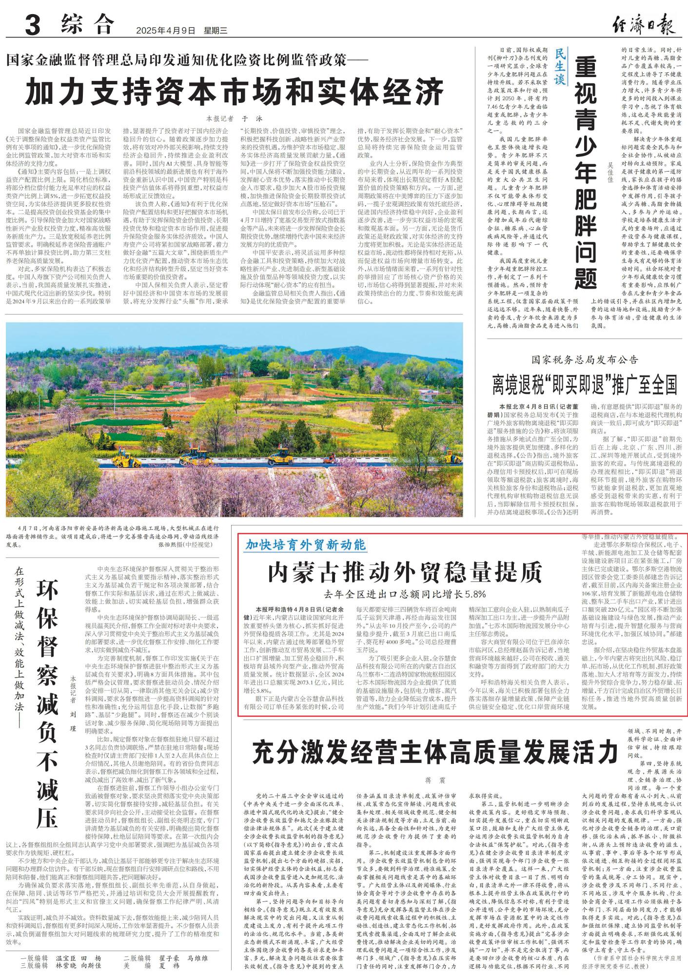 2025年4月9日,《經(jīng)濟日報》第3版刊發(fā)題為《內(nèi)蒙古推動外貿(mào)穩(wěn)量提質(zhì)》的文章,報道了近年來,內(nèi)蒙古以建設(shè)國家向北開放重要橋頭堡為核心,抓實抓好促進(jìn)外貿(mào)保穩(wěn)提質(zhì)各項工作。