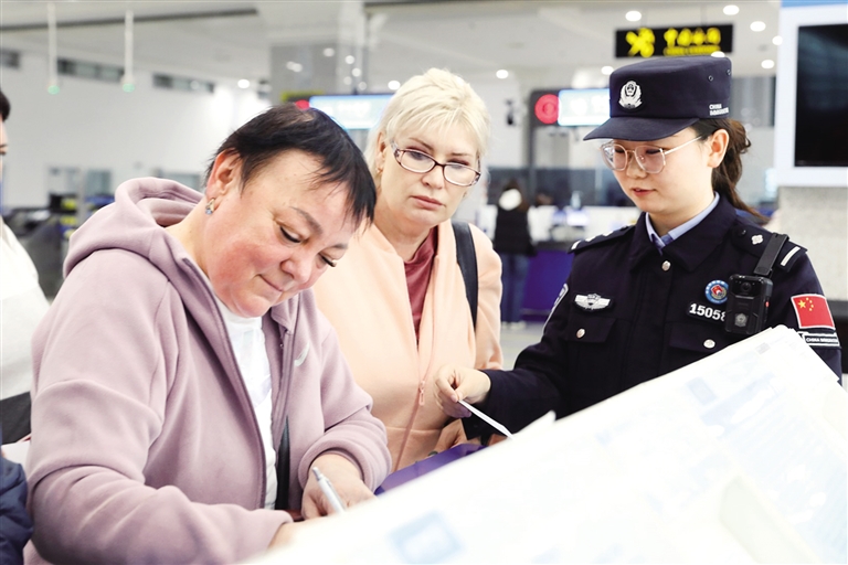 當(dāng)天上午9時(shí),滿洲里口岸出入境大廳內(nèi),俄籍旅客有序排隊(duì)通關(guān),工作人員來(lái)回指引。俄羅斯公民維克多莉婭成為政策實(shí)施后首位入境旅客,她表示非常榮幸,計(jì)劃與朋友前往呼倫貝爾草原游覽;同行旅客阿麗娜、安娜斯塔西婭點(diǎn)贊通關(guān)“快且便捷”,透露將赴海拉爾感受當(dāng)?shù)匚幕?旅客葛利高里則對(duì)“可在華停留30天”的政策贊不絕口。
