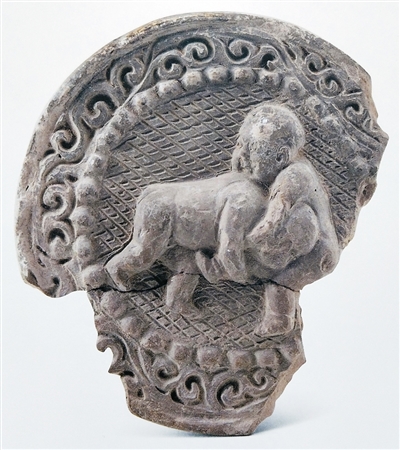 戰(zhàn)國時(shí)期樹木鳥獸紋瓦當(dāng)。