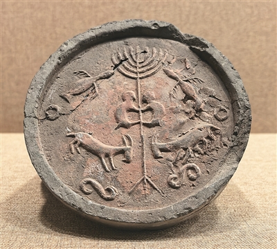 遺址展示館內(nèi),戰(zhàn)國時(shí)期樹木鳥獸紋瓦當(dāng)、漢代“富樂未央,子孫宜昌”銘文磚、北魏角抵瓦當(dāng)?shù)冉ㄖ?gòu)件,訴說著古城的千年繁華。樹木鳥獸紋瓦當(dāng)正中有一株挺拔的樹,弧形樹冠向上舒展,枝葉兩側(cè)對(duì)稱雕刻振翅飛鳥,樹干上的兩只猴子呈攀緣姿態(tài)相對(duì)而立,樹根部對(duì)飾兩只山羊,造型質(zhì)樸。內(nèi)蒙古師范大學(xué)北疆文化研究中心主任陳永志介紹:“樹冠飛鳥、猴子攀樹題材源自中原地區(qū)靈魂升天、王侯將相等文化元素,而對(duì)羊紋又具有草原游牧民族風(fēng)格。這件瓦當(dāng)生動(dòng)體現(xiàn)了中原文化與北方草原文化的交融?!?/p>