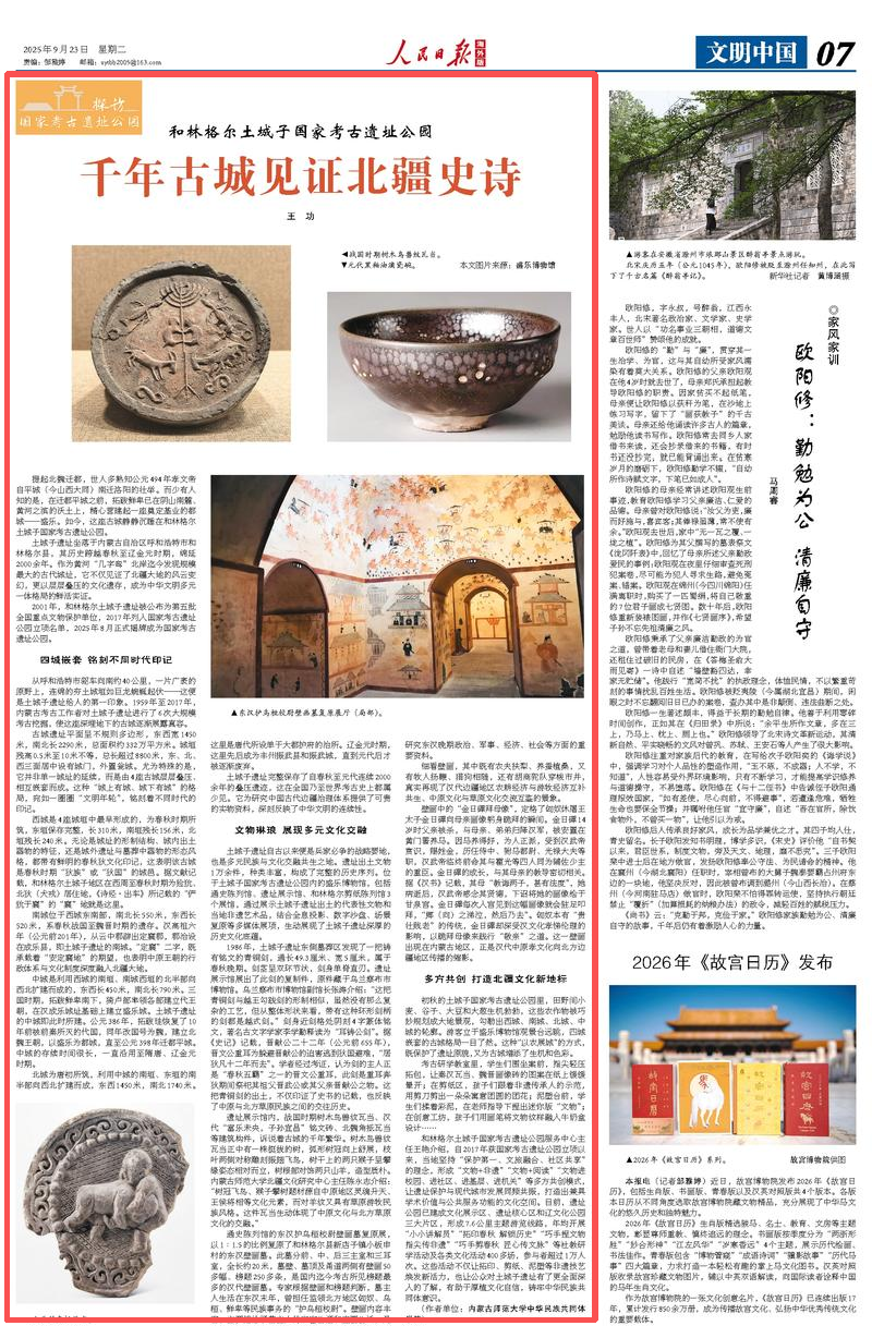 2025年9月23日,《人民日?qǐng)?bào)海外版》第7版刊發(fā)題為《和林格爾土城子國家考古遺址公園千年古城見證北疆史詩(探訪國家考古遺址公園)》的文章,報(bào)道了土城子遺址坐落于內(nèi)蒙古自治區(qū)呼和浩特市和林格爾縣,其歷史跨越春秋至遼金元時(shí)期,綿延2000余年。