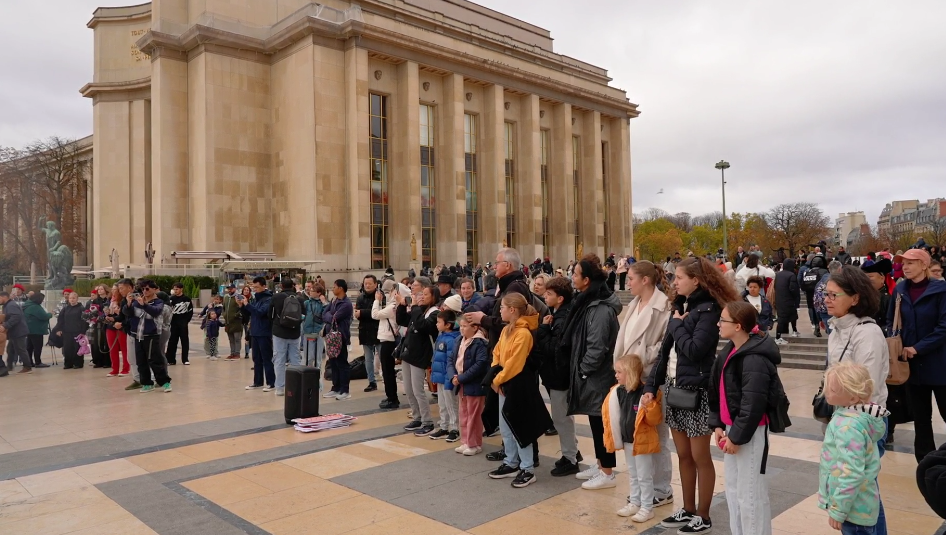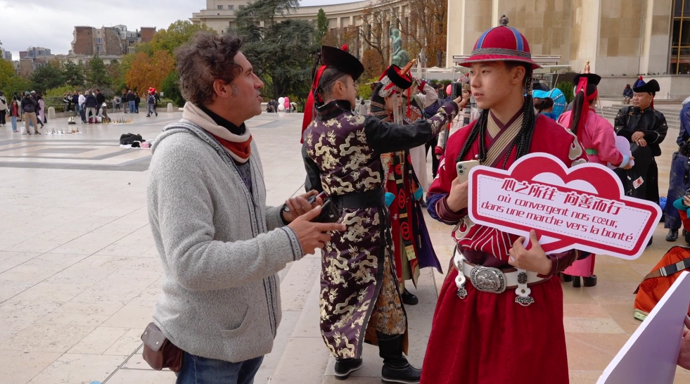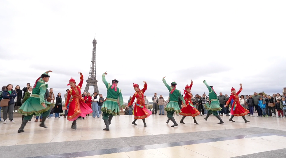 在法國巴黎市的夏約宮廣場(chǎng)、埃菲爾鐵塔、香榭麗舍大街、巴黎圣母院、凱旋門、國際大學(xué)城,比利時(shí)布魯塞爾市大廣場(chǎng)、藝術(shù)山等地,阿拉善的烏蘭牧騎演員開啟了一場(chǎng)場(chǎng)融合蒙古族華服走秀與快閃歌舞表演,“阿拉善在哪里?”“這服裝太酷了!”“怎么有萬馬奔騰的感覺!”“想去看一看!”“這沙漠也太壯觀了!”快閃路演吸引了法國、比利時(shí)以及來自世界各地的游客駐足觀看,喝彩不斷,沉醉其中。