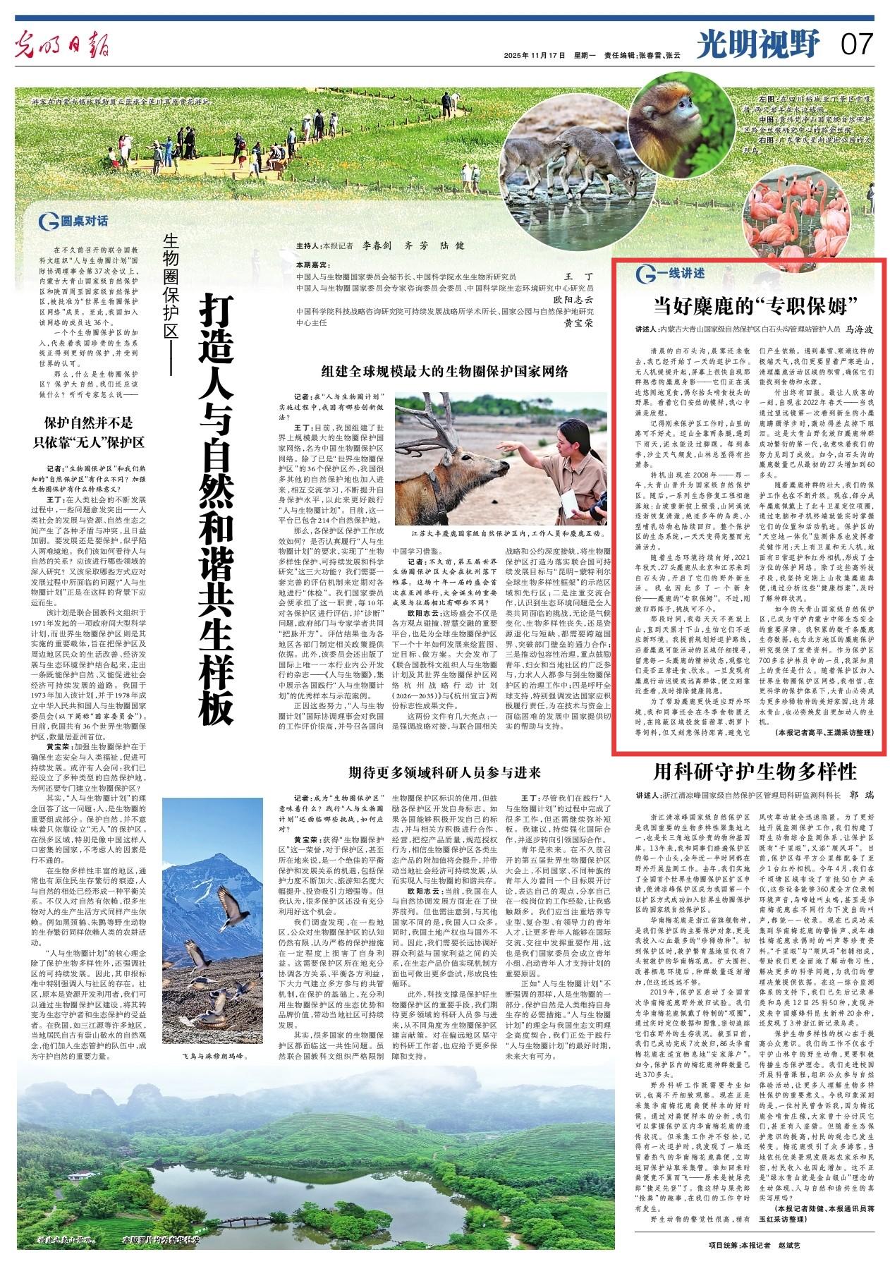 2025年11月17日,《光明日?qǐng)?bào)》第7版刊發(fā)題為《當(dāng)好麋鹿的“專職保姆”》的文章,以內(nèi)蒙古大青山國(guó)家級(jí)自然保護(hù)區(qū)白石頭溝管理站管護(hù)人員馬海波的視角,講述當(dāng)好麋鹿的“專職保姆”的故事,如今白石頭溝的麋鹿數(shù)量已從最初的27頭增加到60多頭。