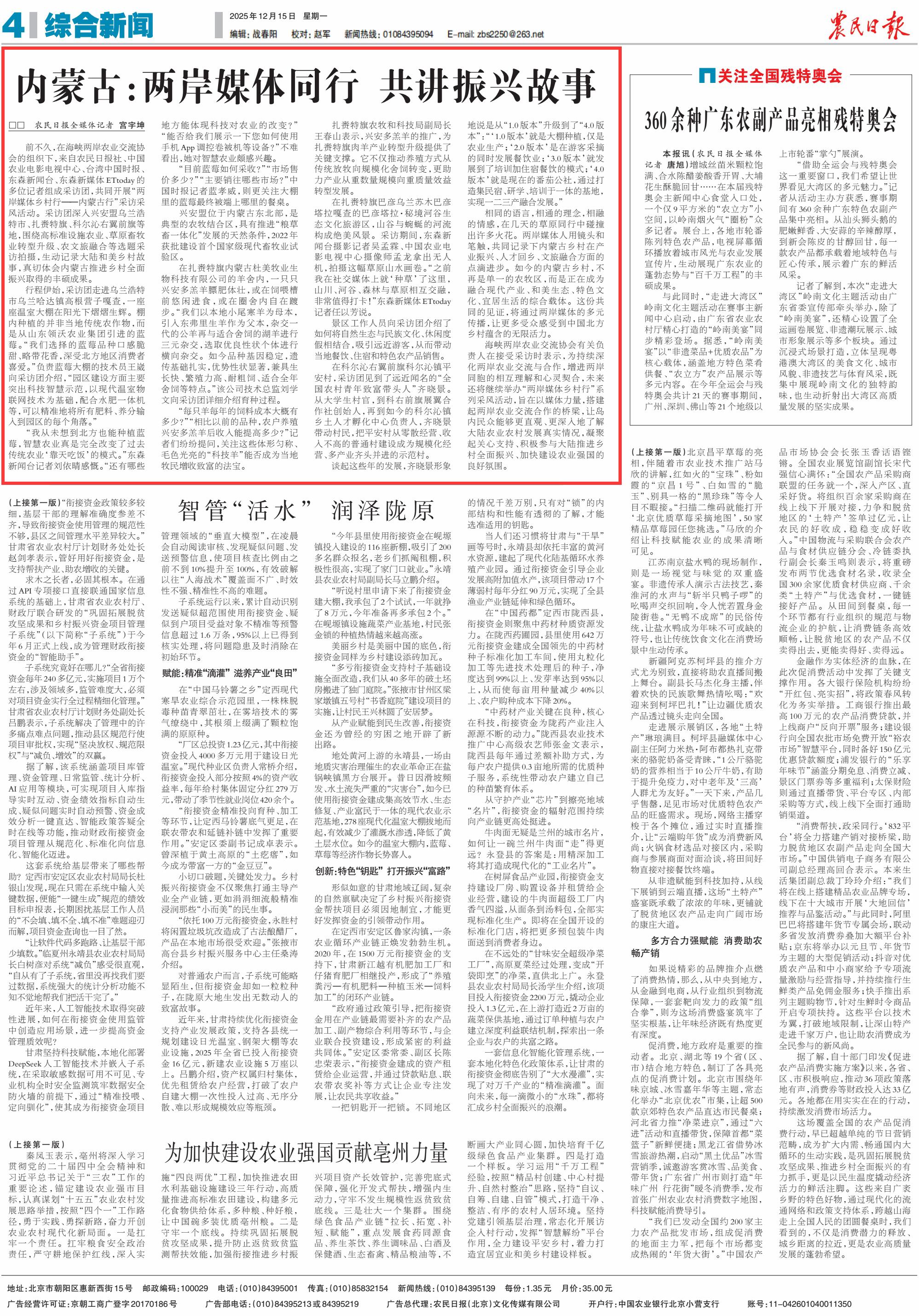 《農(nóng)民日?qǐng)?bào)》(2025年12月15日04版)