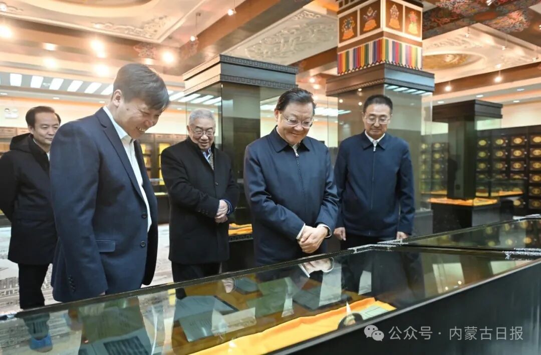 12月16日,自治區(qū)黨委書記王偉中來(lái)到圖書館、蒙古文古籍文獻(xiàn)展閱室,仔細(xì)察看館藏文獻(xiàn),詳細(xì)詢問(wèn)圖書文獻(xiàn)資源建設(shè)、研究開(kāi)發(fā)等工作。草原云·內(nèi)蒙古新聞網(wǎng)記者 馬建兵 攝