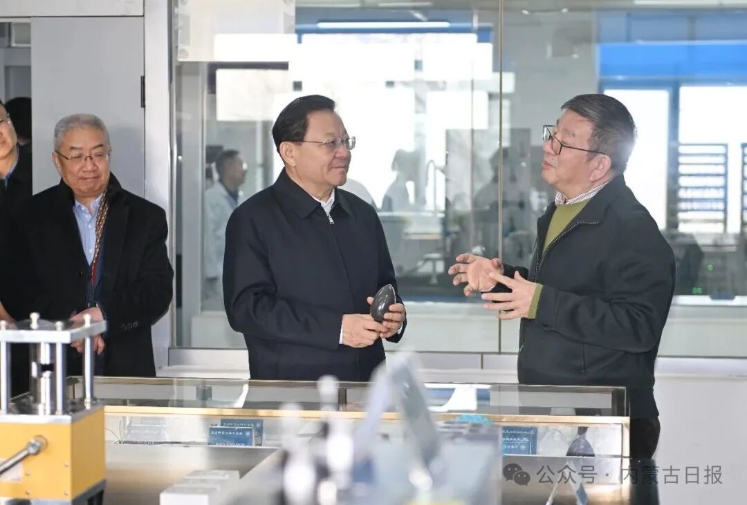 12月16日,自治區(qū)黨委書記王偉中走進(jìn)功能介孔材料實(shí)驗(yàn)室,認(rèn)真聽(tīng)取高寒地區(qū)電池儲(chǔ)能系統(tǒng)研發(fā)等進(jìn)展情況介紹。草原云·內(nèi)蒙古新聞網(wǎng)記者 馬建兵 攝