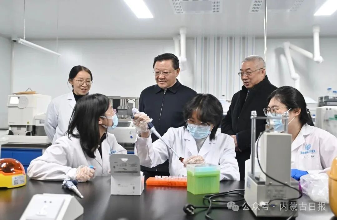 12月16日,自治區(qū)黨委書記王偉中來(lái)到畜牧研究所實(shí)驗(yàn)室,認(rèn)真了解科研平臺(tái)建設(shè)、技術(shù)攻關(guān)進(jìn)展。草原云·內(nèi)蒙古新聞網(wǎng)記者 馬建兵 攝