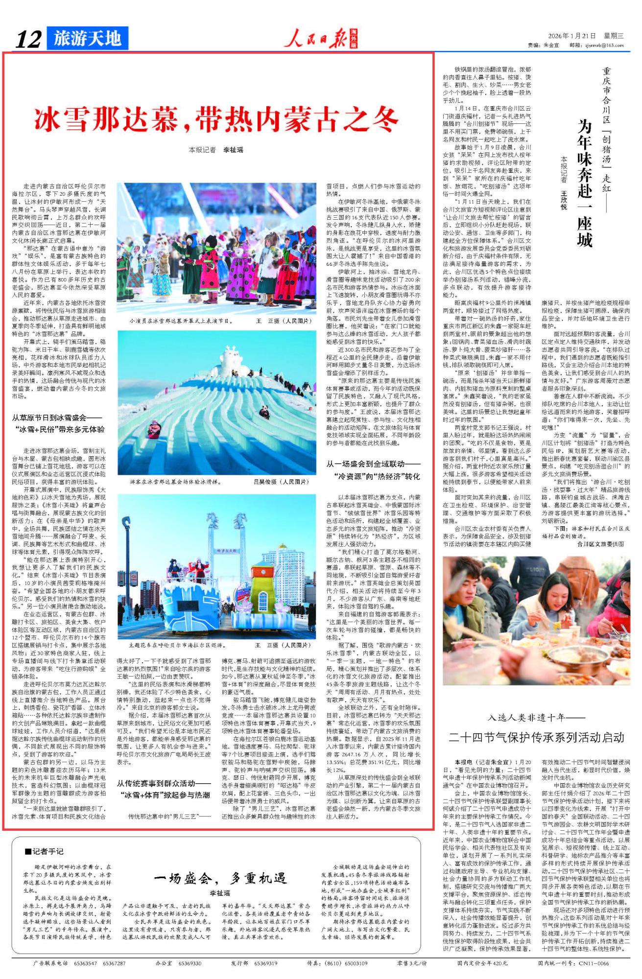2026年1月21日《人民日?qǐng)?bào)海外版》第12版刊發(fā)了《冰雪那達(dá)慕,帶熱內(nèi)蒙古之冬》的文章,報(bào)道了近年來,內(nèi)蒙古各地依托冰雪資源稟賦,將傳統(tǒng)民俗與冰雪旅游相結(jié)合,推動(dòng)那達(dá)慕從草原走進(jìn)城市、由夏季向冬季延伸,打造具有鮮明地域特色的“冰雪那達(dá)慕”品牌,為內(nèi)蒙古冬季文旅注入新活力。
