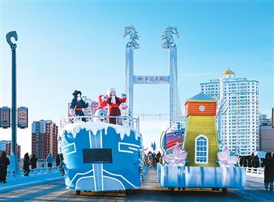 蒙古包群的另一邊,以馬為主題的彩色冰雕喜迎農(nóng)歷馬年;13米長(zhǎng)的未來機(jī)車巨型冰雕融合聲光電技術(shù),營(yíng)造科幻氛圍;以曲棍球冠軍群像為主題的雪雕群成為游客拍照留念的打卡點(diǎn)。