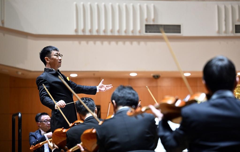 12月20日,指揮李心草在音樂會上指揮。