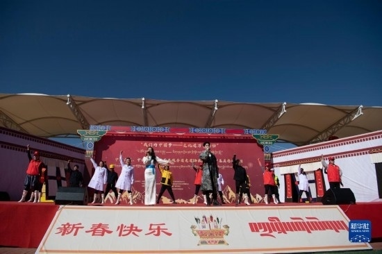 2月19日,演員在西藏拉薩市堆龍德慶區(qū)濱河體育公園表演。