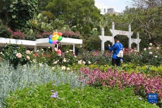 3月8日,游客在深圳人民公園花展現(xiàn)場(chǎng)拍照留念。