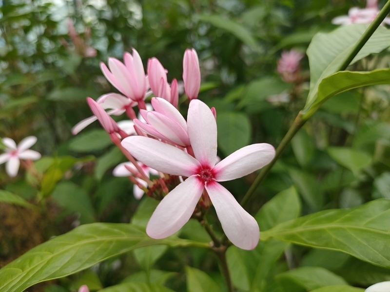 廣東省廣州市華南國(guó)家植物園里,紅花蕊木花色呈淡粉色,散發(fā)清香。人民網(wǎng) 王雅蝶攝