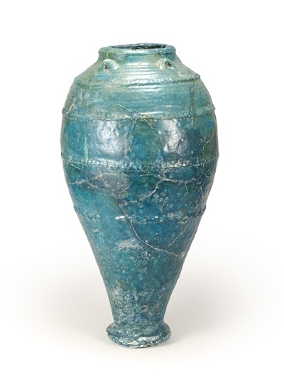 展覽展出的孔雀藍釉陶瓶。