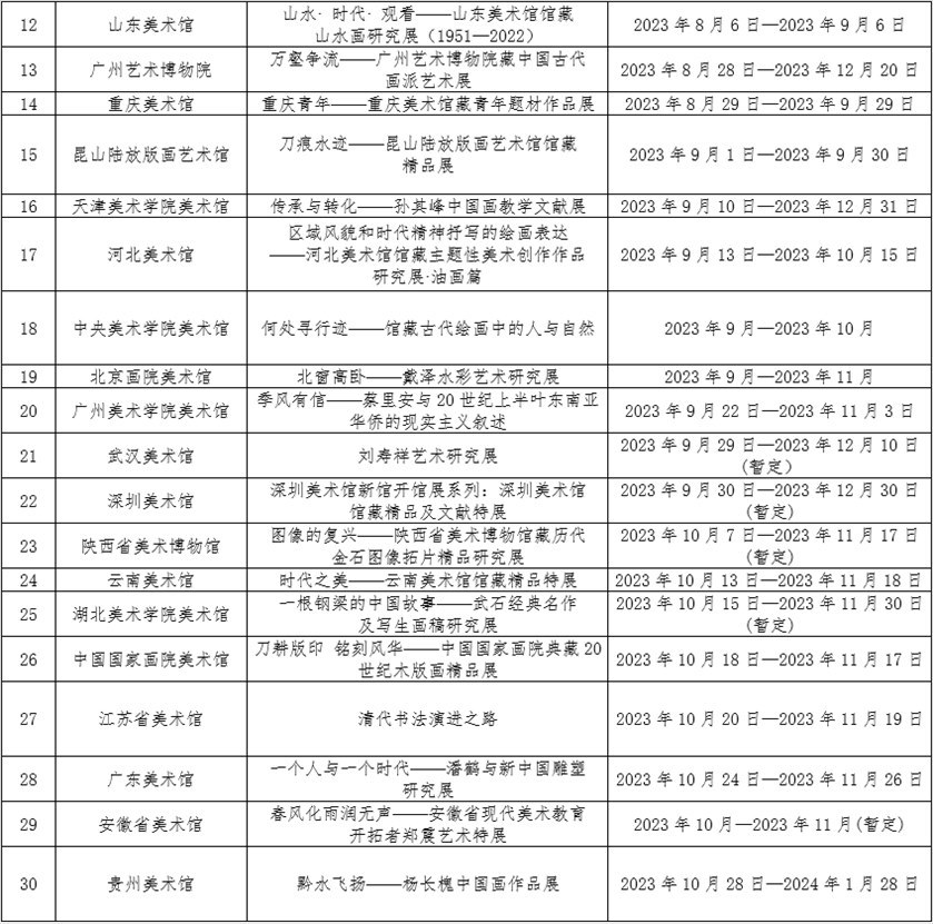 附:2023年全國美術(shù)館館藏精品展出季活動目錄(按展覽時(shí)間排序)