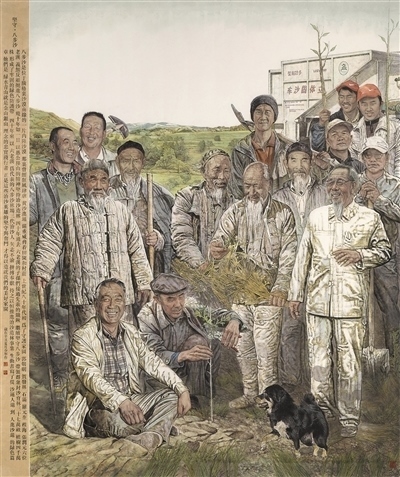 “三北”工程背后,是動(dòng)人的英雄故事。寧夏“治沙英雄”王有德、甘肅八步沙林場(chǎng)“六老漢”……無(wú)數(shù)平凡的造林人,以尺寸之功積千秋之利,成為防沙治沙的模范人物,也成為美術(shù)工作者著力塑造的英雄形象。