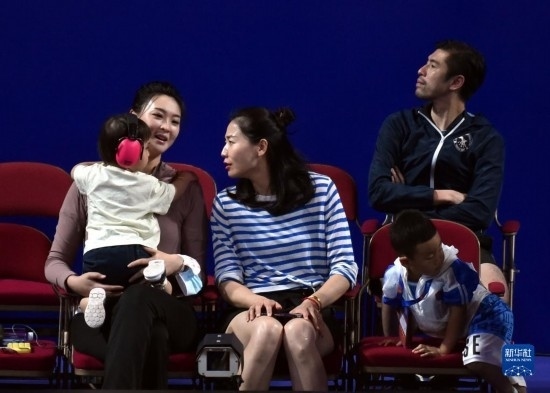 6月16日,原中國(guó)女排球員魏秋月(前中)和惠若琪(前左)在場(chǎng)邊觀賽。新華社記者 盧炳輝 攝