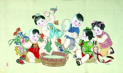 年畫(huà)《五子愛(ài)清潔》 張鸞