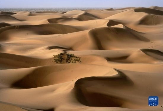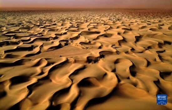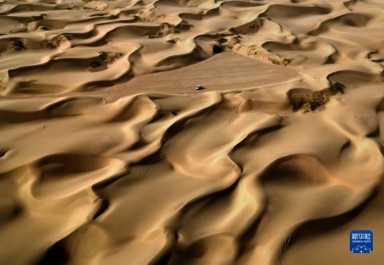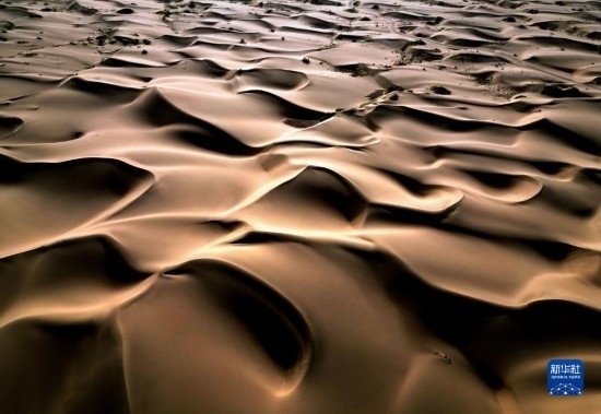 這是9月7日在新疆喀什地區(qū)麥蓋提縣N39°沙漠旅游景區(qū)拍攝的沙漠風(fēng)光(無(wú)人機(jī)照片)。