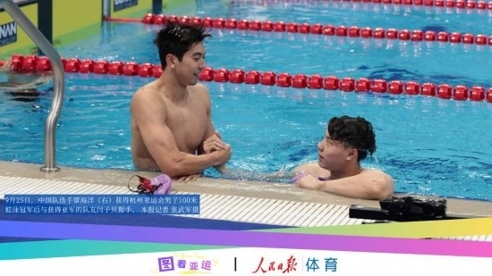 亞運(yùn)賽場(chǎng)不僅有激烈的競(jìng)爭(zhēng),更有真誠的交流。杭州亞運(yùn)會(huì)賽場(chǎng)內(nèi)外,友誼之花處處綻放。覃海洋、閆子貝握手慶祝包攬男子100米蛙泳冠亞軍,新加坡隊(duì)選手康占斌向柯潔贈(zèng)送紀(jì)念徽章以示友好,泰國選手和陳燁碰拳表示祝賀……亞運(yùn)會(huì)既是運(yùn)動(dòng)員們切磋技術(shù)、較量能力的舞臺(tái),也搭建起了溝通的橋梁,充分印證了杭州亞運(yùn)會(huì)“心心相融,愛達(dá)未來”的口號(hào)。