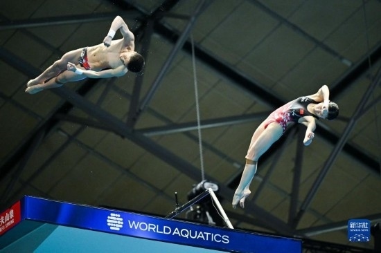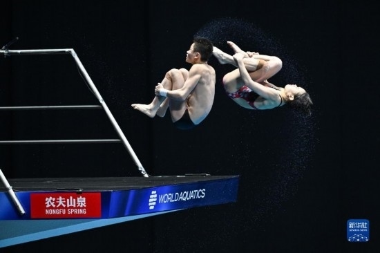 當日,在2023年福岡世界游泳錦標賽跳水混雙10米臺決賽中,中國組合王飛龍/張家齊以總分339.54分的成績奪得冠軍。