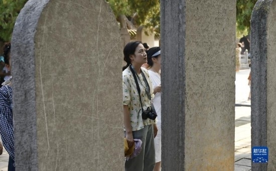 8月7日,游人在嵩陽書院內(nèi)參觀“大唐嵩陽觀紀(jì)圣德感應(yīng)之頌碑”。