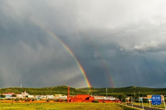 這是8月31日拍攝的阿爾山市的彩虹(無人機照片)。