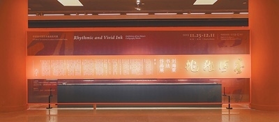 “墨海龍蛇——?jiǎng)⒑K跁?shū)法作品展”展廳一景。中國(guó)美術(shù)館供圖