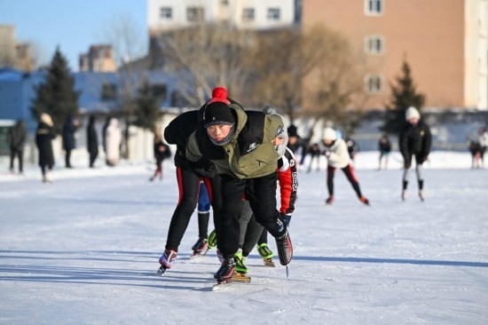 這個冬季,73歲的呼和浩特市民張凱也從輪滑“跨界”到了速滑?!岸斓孛嬗斜瑳]法玩輪滑了,‘十四冬’啟發(fā)了我們,可以換到冰場上去玩。”張凱說。