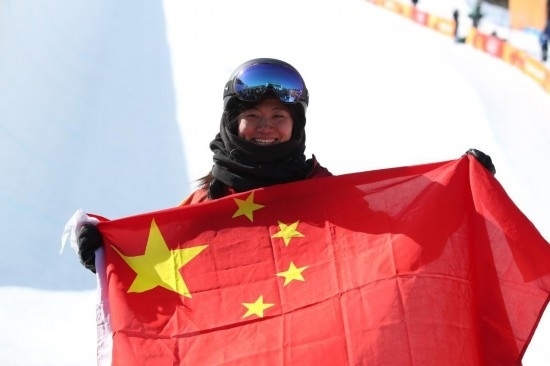 2018年2月13日,中國選手劉佳宇在比賽后慶祝。當日,在2018年平昌冬奧會單板滑雪女子U型場地技巧決賽中,劉佳宇獲得銀牌。新華社記者費茂華攝