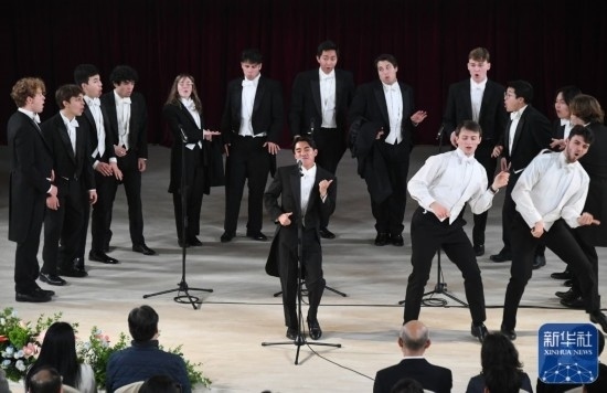 3月21日,耶魯胡同貓合唱團(tuán)在音樂(lè)會(huì)上演出。新華社記者 任超 攝
