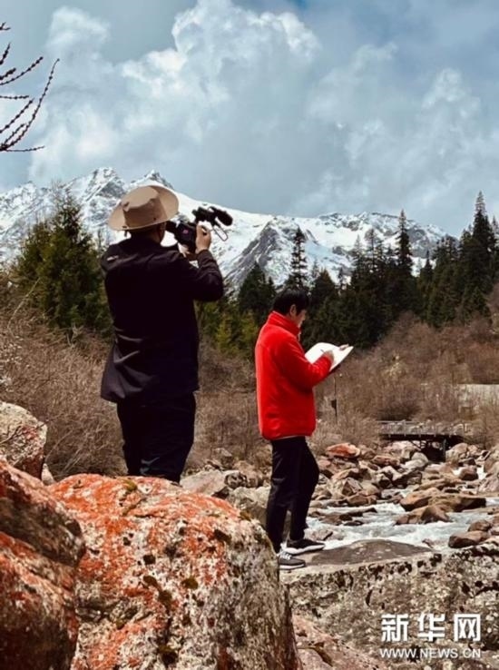 藝術(shù)家在達(dá)古冰川景區(qū)采風(fēng)創(chuàng)作