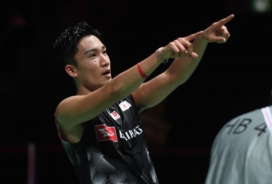 5月2日,日本隊(duì)選手桃田賢斗在比賽后向觀眾致意。新華社記者 賈浩成 攝