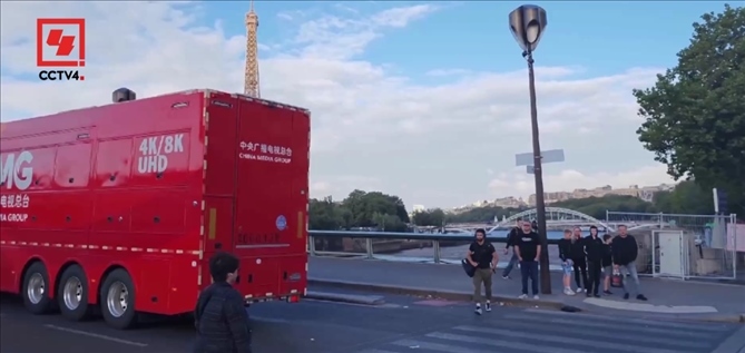 中央廣播電視總臺“中國紅”8K超高清轉(zhuǎn)播車,歷經(jīng)近2個月的旅程,在當?shù)貢r間7月16日,終于抵達巴黎法蘭西體育場。行駛途中,“中國紅”一路經(jīng)過凱旋門、埃菲爾鐵塔等巴黎地標性建筑,引發(fā)當?shù)孛癖姎g呼贊嘆。