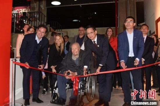 當?shù)貢r間8月12日,巴西圣保羅州坎皮納斯市,“中國藝術五千年 塞奎拉·萊特收藏”啟幕。圖為收藏家塞奎拉·萊特(前左二)在開幕式上剪彩。中新社記者 林春茵 攝