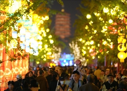 今年中秋假期,“京彩燈會”吸引了超過12萬名游客。國慶假期前4天,游客量達(dá)7萬余人。除了大飽眼福,燈會還設(shè)立150余家特色商鋪,覆蓋老字號、非遺、文創(chuàng)、餐飲美食等,豐富游客體驗。多家知名餐飲企業(yè)在燈會擺攤設(shè)點(diǎn)為游客服務(wù),賞燈之余還能享受大廚現(xiàn)做的星級美食。