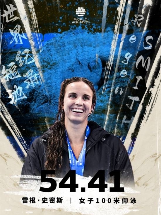 在女子100米仰泳決賽中,美國(guó)名將史密斯以54秒41的成績(jī)奪得金牌并刷新世界紀(jì)錄。