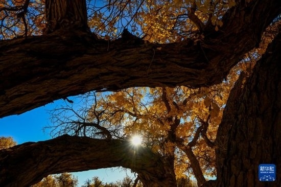這是10月27日在額濟(jì)納旗大漠胡楊林景區(qū)拍攝的胡楊。
