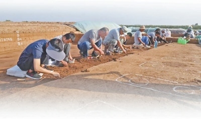 洹北商城考古隊(duì)在田野發(fā)掘。