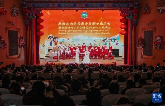 12月28日拍攝的西藏首屆少兒新年音樂會(huì)暨西藏珠峰少年合唱團(tuán)2024年匯報(bào)演出現(xiàn)場(chǎng)。