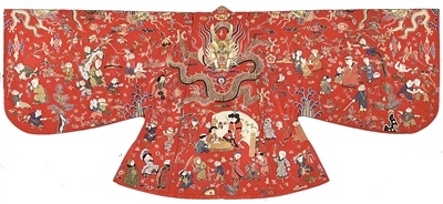 圖為明代定陵出土的孝靖皇后百子衣背面(復(fù)制品)。