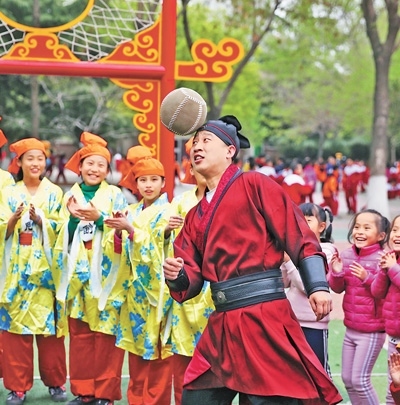 “春日蹴鞠,承載著古人的生活意趣,也帶給今人身心愉悅?!崩顐i說,“這一刻,文化傳承更具象化了!”