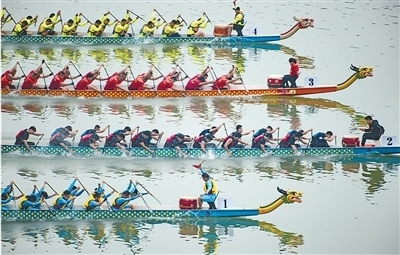 “比賽項目很豐富,有200米、500米直道賽以及搶紅奪標(biāo)賽,今年還新設(shè)了龍舟拔河?!惫ふf,傳統(tǒng)的龍舟一般坐22個人,現(xiàn)在比賽用的小龍舟通常坐12個人。