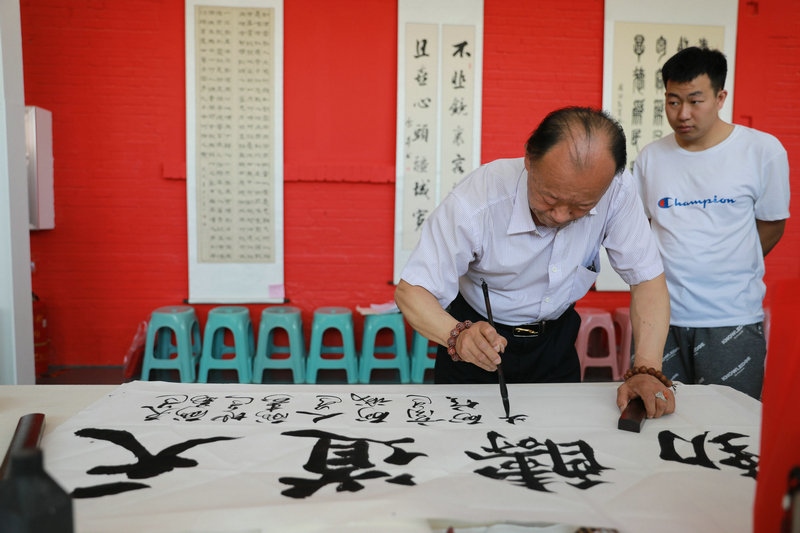 活動現(xiàn)場,書畫家們鋪開宣紙,揮灑愛心情懷。30余名書畫家和愛心人士在活動現(xiàn)場揮毫潑墨、內(nèi)蘊(yùn)文質(zhì)精華,外彰形制逸美,以古典文詞展示"尚善"情操和"望賢"之心。"止于至善"、"家和業(yè)興,寧靜致遠(yuǎn)"、"構(gòu)建和諧社會 倡導(dǎo)助殘風(fēng)尚"……一幅幅充滿著關(guān)愛和正能量的藝術(shù)作品陸續(xù)被創(chuàng)作完成。