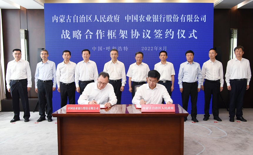 8月2日,自治區(qū)政府與中國(guó)農(nóng)業(yè)銀行在呼和浩特簽署戰(zhàn)略合作框架協(xié)議。自治區(qū)黨委書記孫紹騁,中國(guó)農(nóng)業(yè)銀行黨委書記、董事長(zhǎng)谷澍見證簽約。