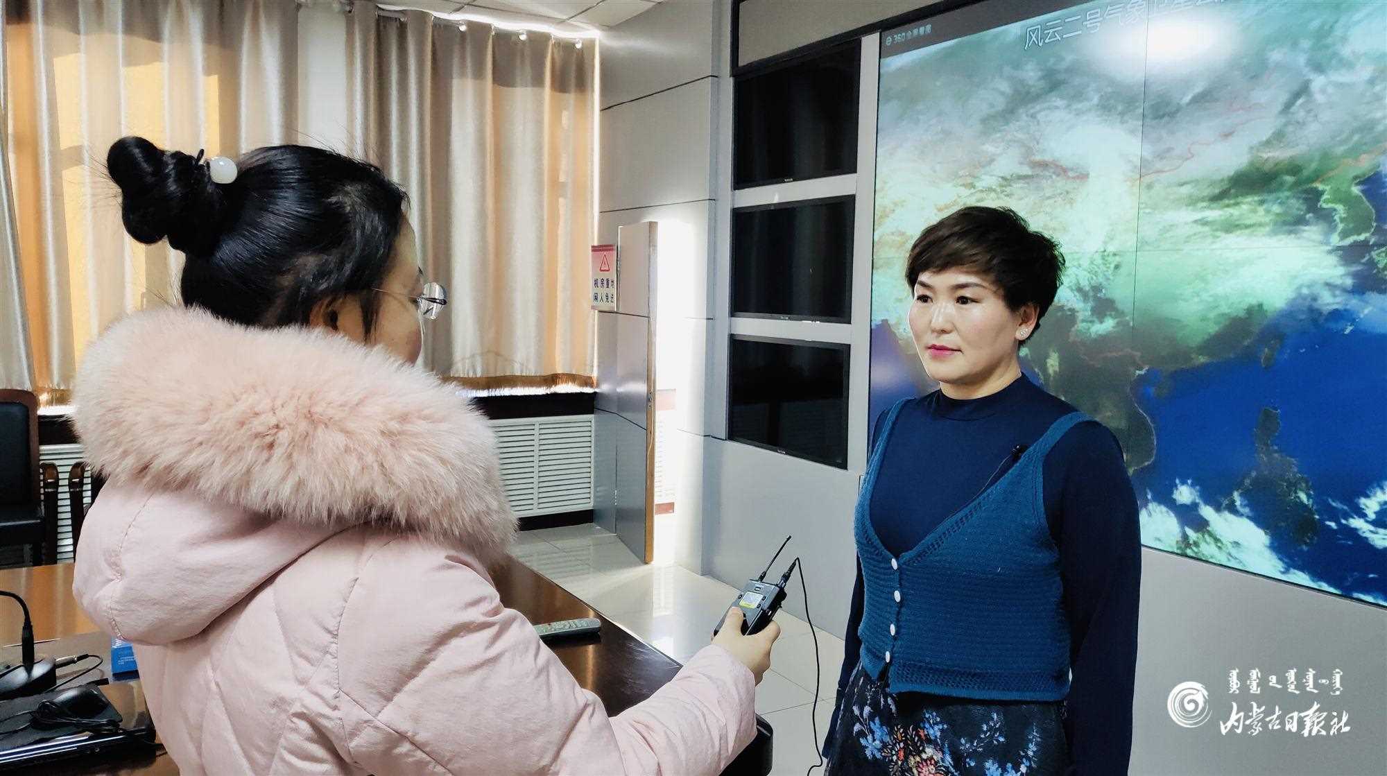達(dá)茂旗氣象局局長(zhǎng)敖登其木格接受采訪。